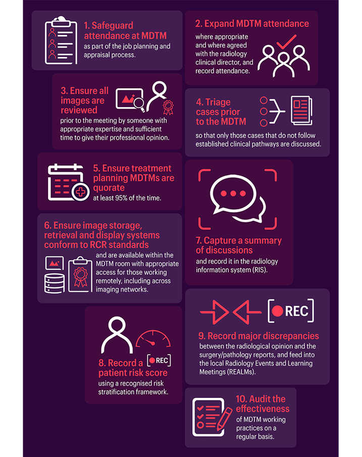 Although most of the guidance applies to cancer MDTMs, many of these recommendations will also be applicable to non-cancer MDTMs and other clinicoradiological meetings.
