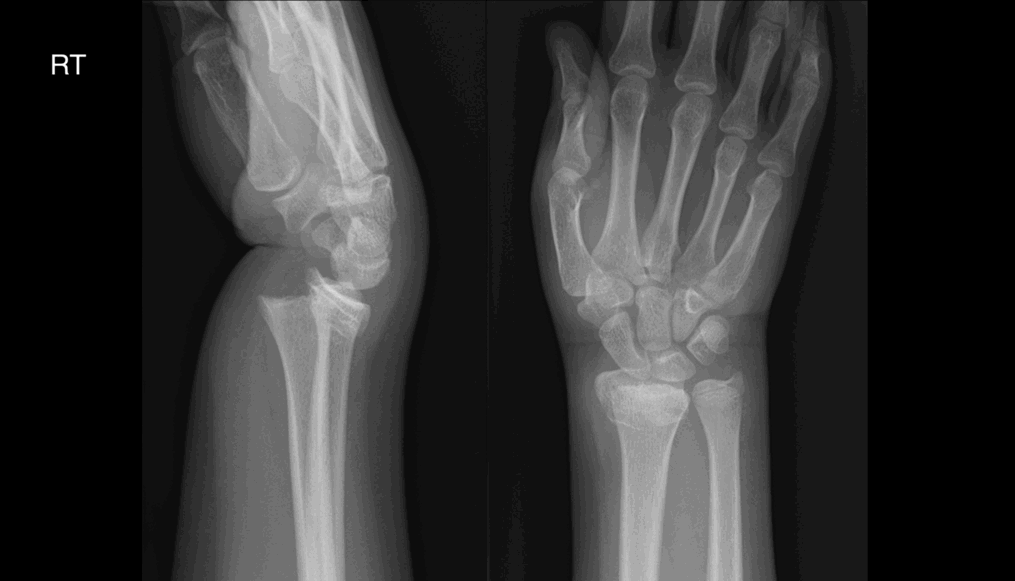 Age 14, male. Referral from ED. History: Painful wrist after falling off skateboard.