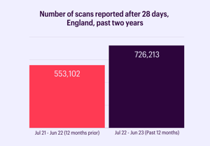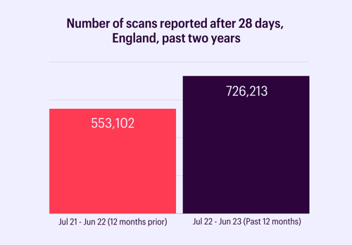 For the past six months, just under 70,000 scans each quarter, or approximately 20,000 each month, were reported beyond four weeks, higher than in the period immediately after the final Covid-19 lockdown (July-September 2021).
