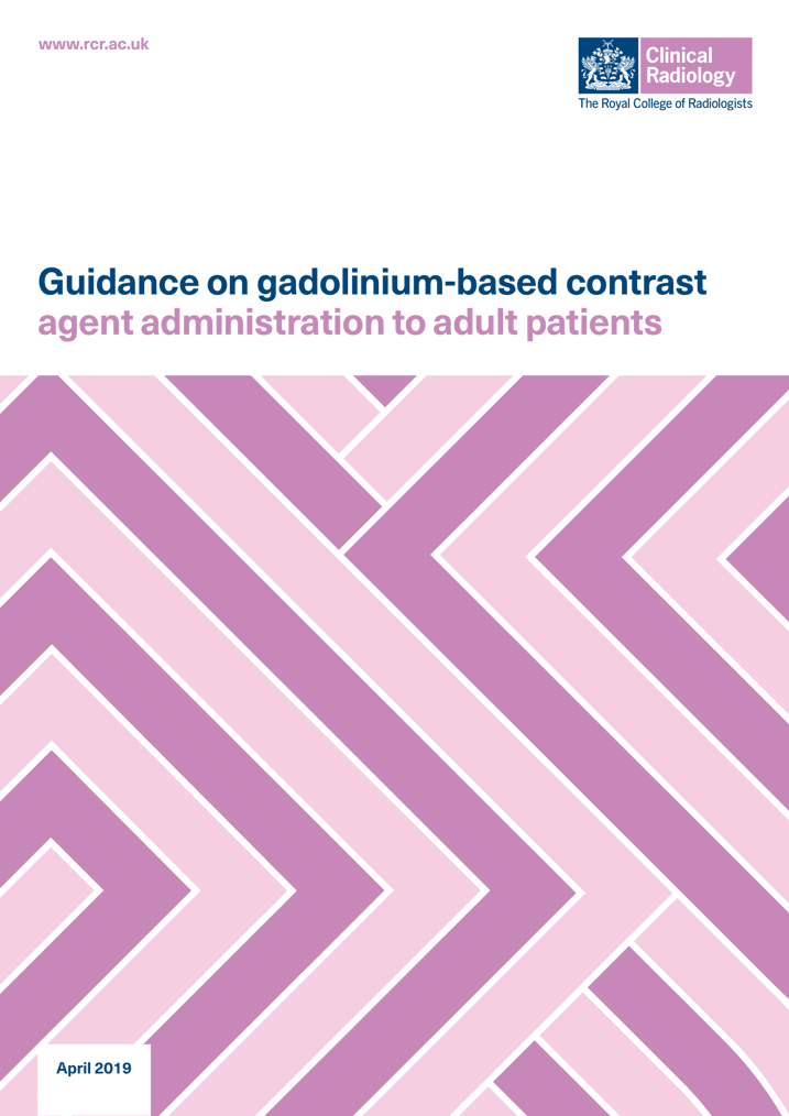 This guidance replaces the previous guidance on Gadolinium-based contrast media and nephrogenic systemic fibrosis and Standards for intravascular contrast administration in adult patients, third edition, which have now been archived. The RCR endorses The Royal Australian and New Zealand College of Radiologists’ 2016 Iodinated Contrast Guidelines, which can be viewed online and should be used alongside this document.
